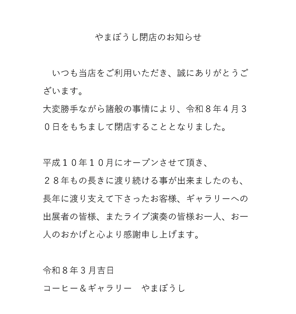 趣味の集う場所 「やまぼうし」 静岡市にある喫茶とギャラリーのお店 「やまぼうし」 ・コーヒーを飲みながら気軽にアートに出会えます ・音楽、アートなど好きな事をしている人々が手作りで作り上げた「趣味の集う場所」です。